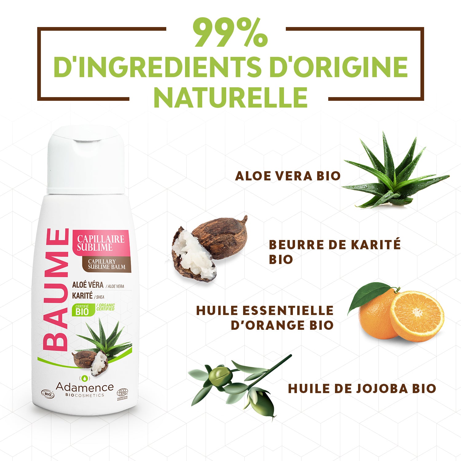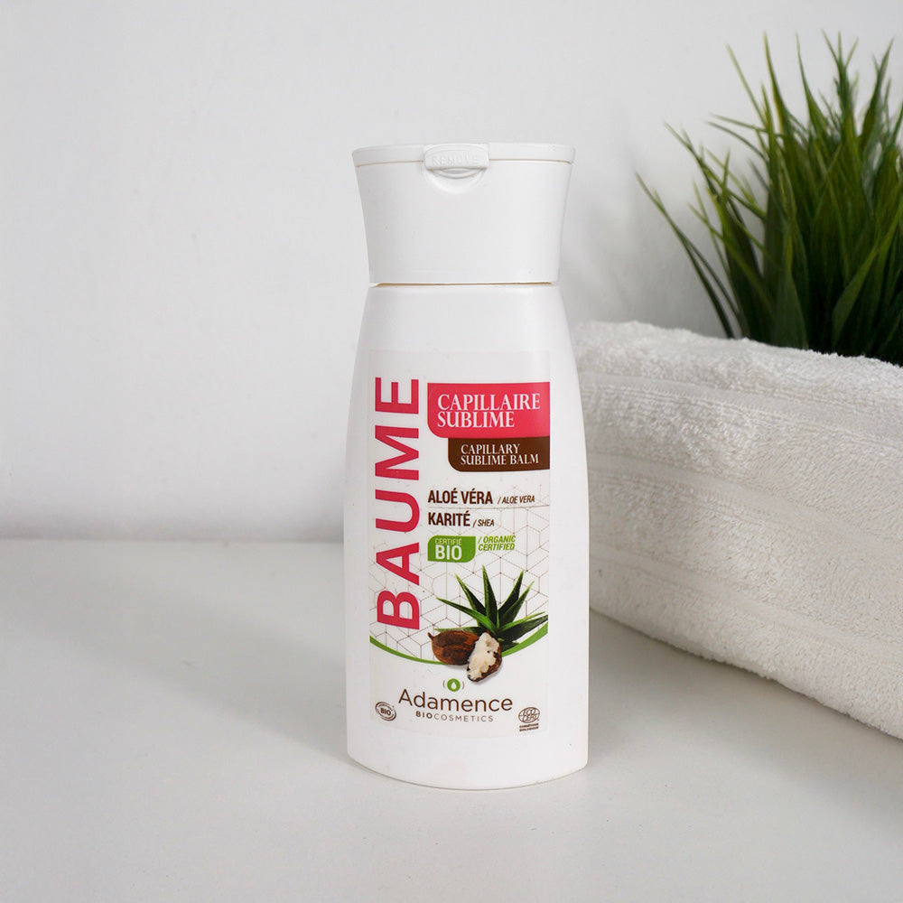 Ce baume sublime pour vos pointes associe les propriétés nourrissantes du beurre de karité, de l’aloe vera bio et de l’huile de jojoba. Le baume laisse un parfum délicat sur vos cheveux.