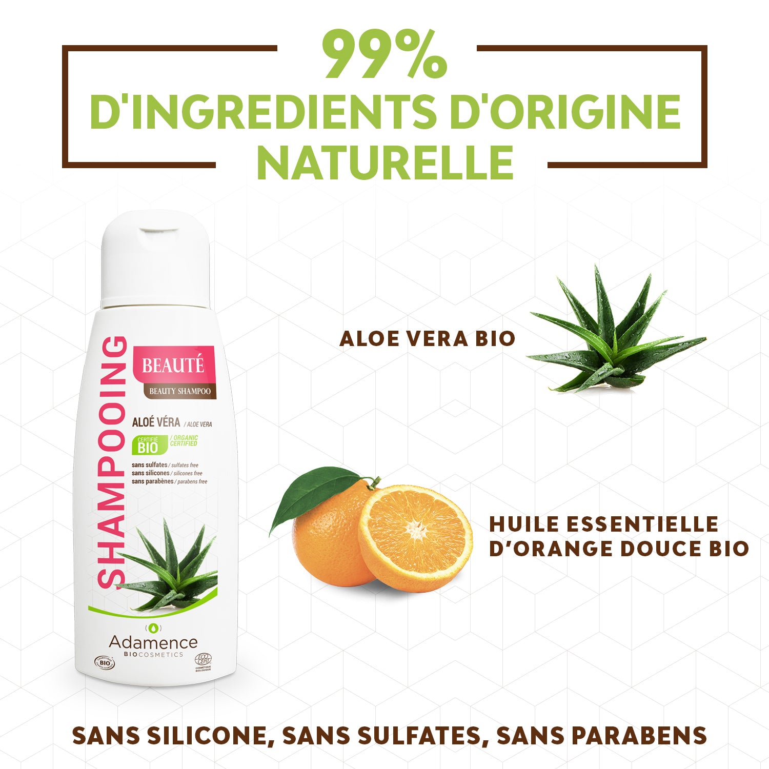 Ce shampooing beauté est à base d’aloe vera, d’orange douce et d’un complexe d’ingrédients actifs qui apportent volume, brillance et hydratation.